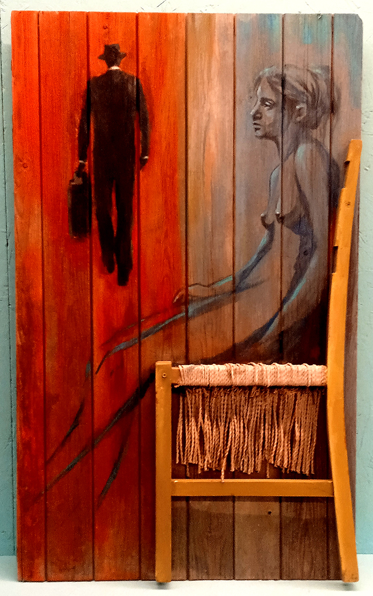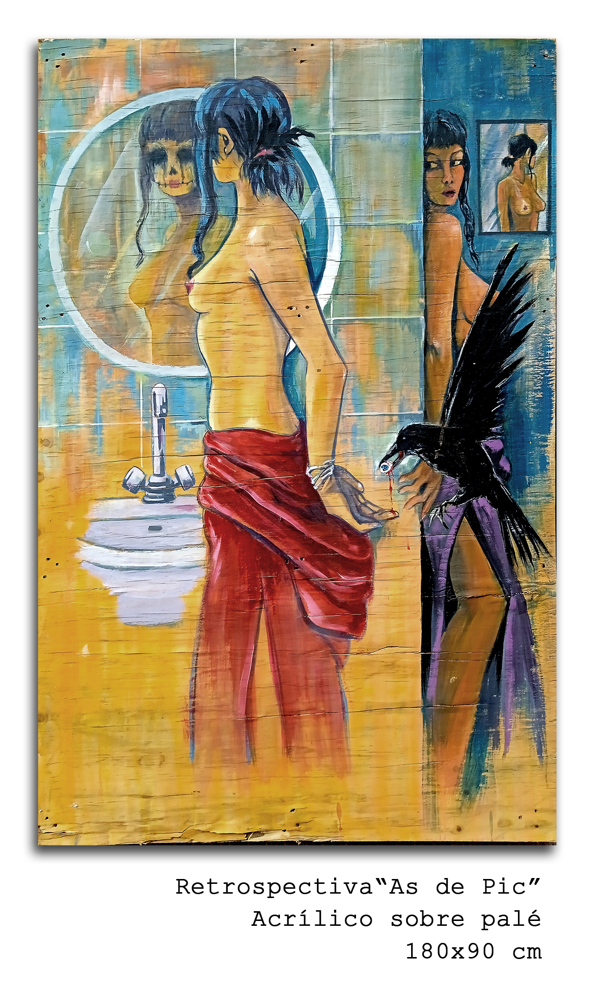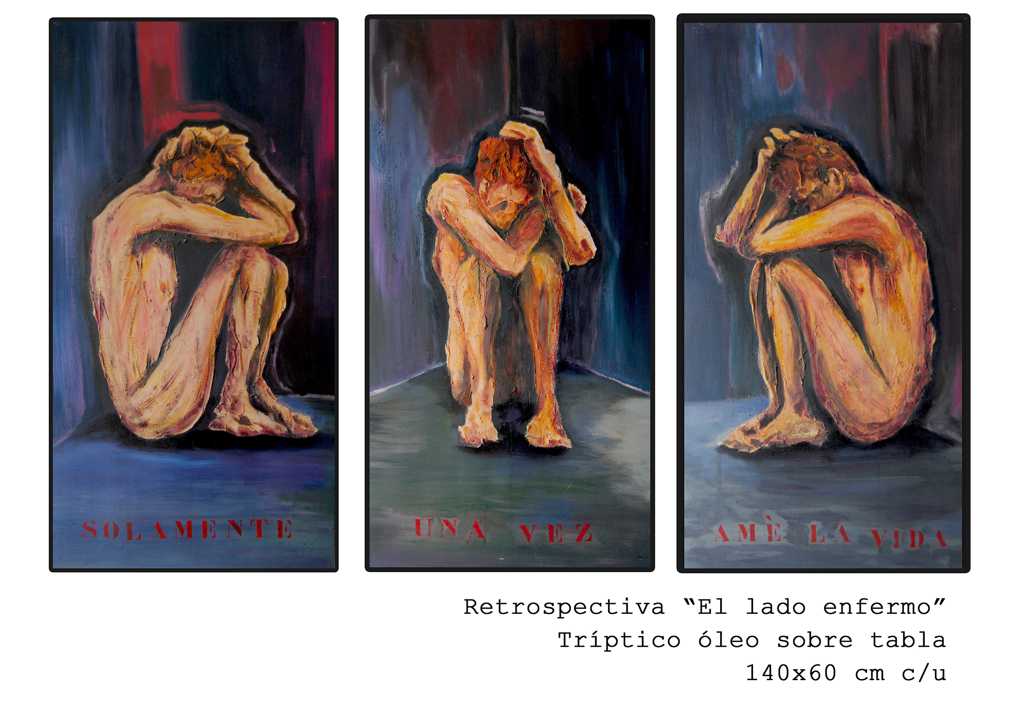 Retrospectiva "El lado enfermo" - Tríptico óleo sobre tabla 140x60 cm c/u | "As de Pic" Acrílico sobre palé 180x90 cm